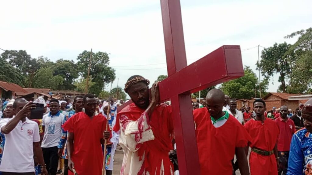 Le dernier chemin de croix du temps de Carême s’est tenu à la paroisse Saints Tite et Timothée, dans le 8ᵉ arrondissement de Bangui, sous la conduite de Dieudonné Nzapalaïnga, archevêque métropolitain de Bangui.